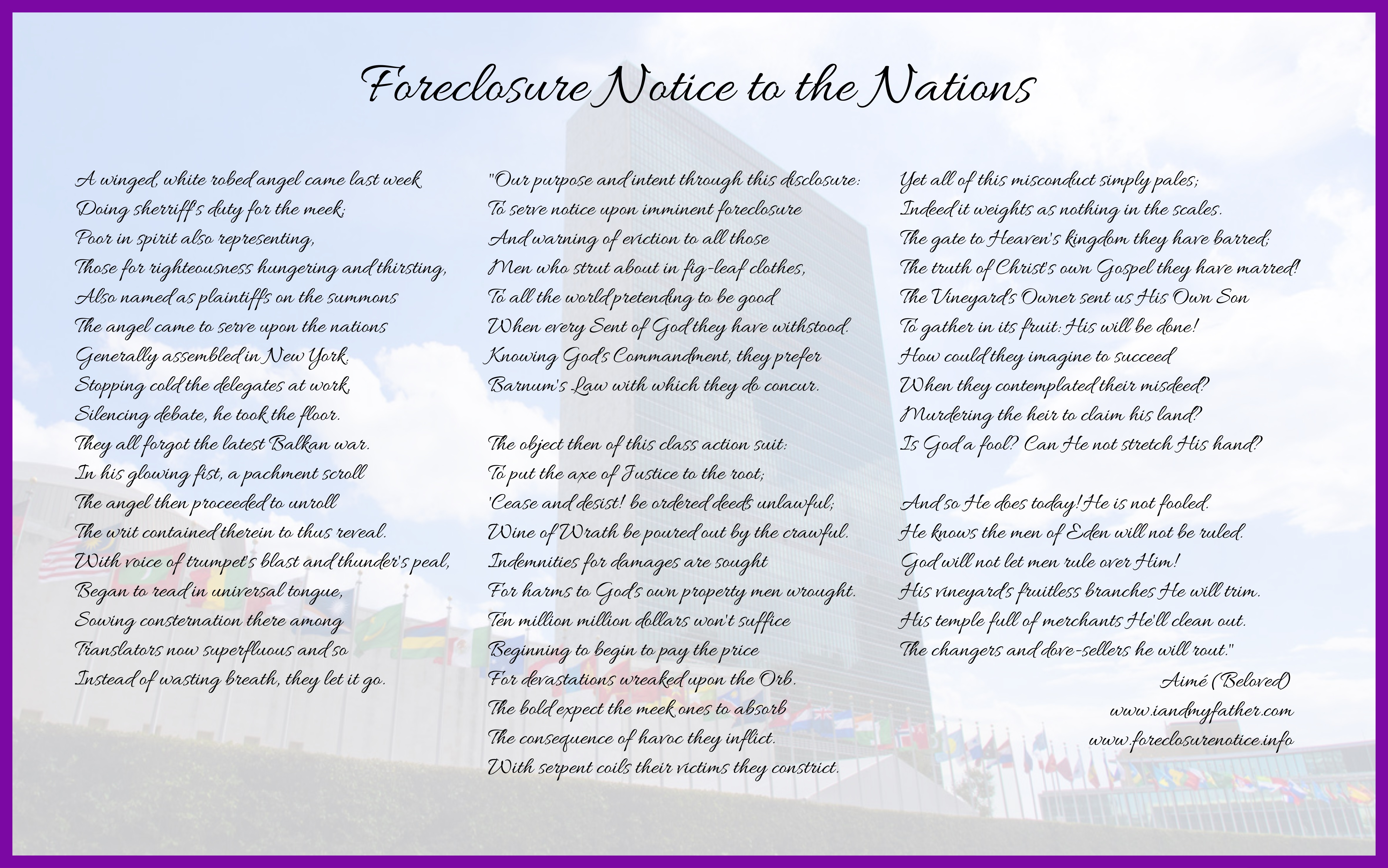 "FORECLOSURE NOTICE TO THE WICKED VINEDRESSERS":
